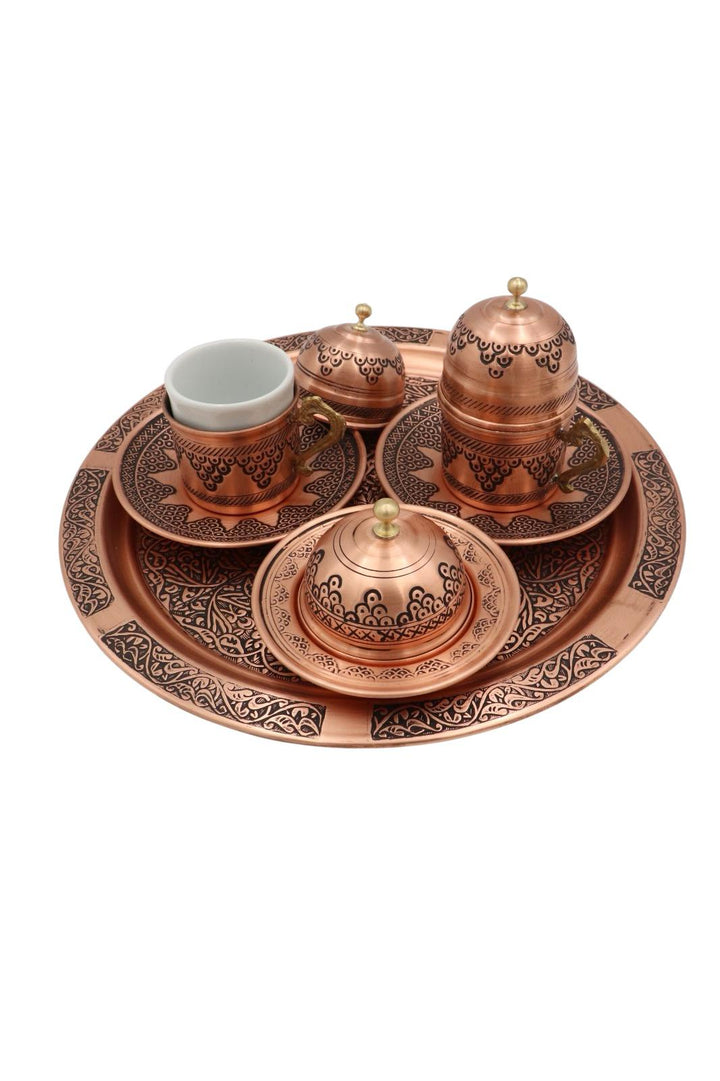 Luxury Handmade Turkish Copper Coffee Set – 6 Pieces with Velvet Gift Box